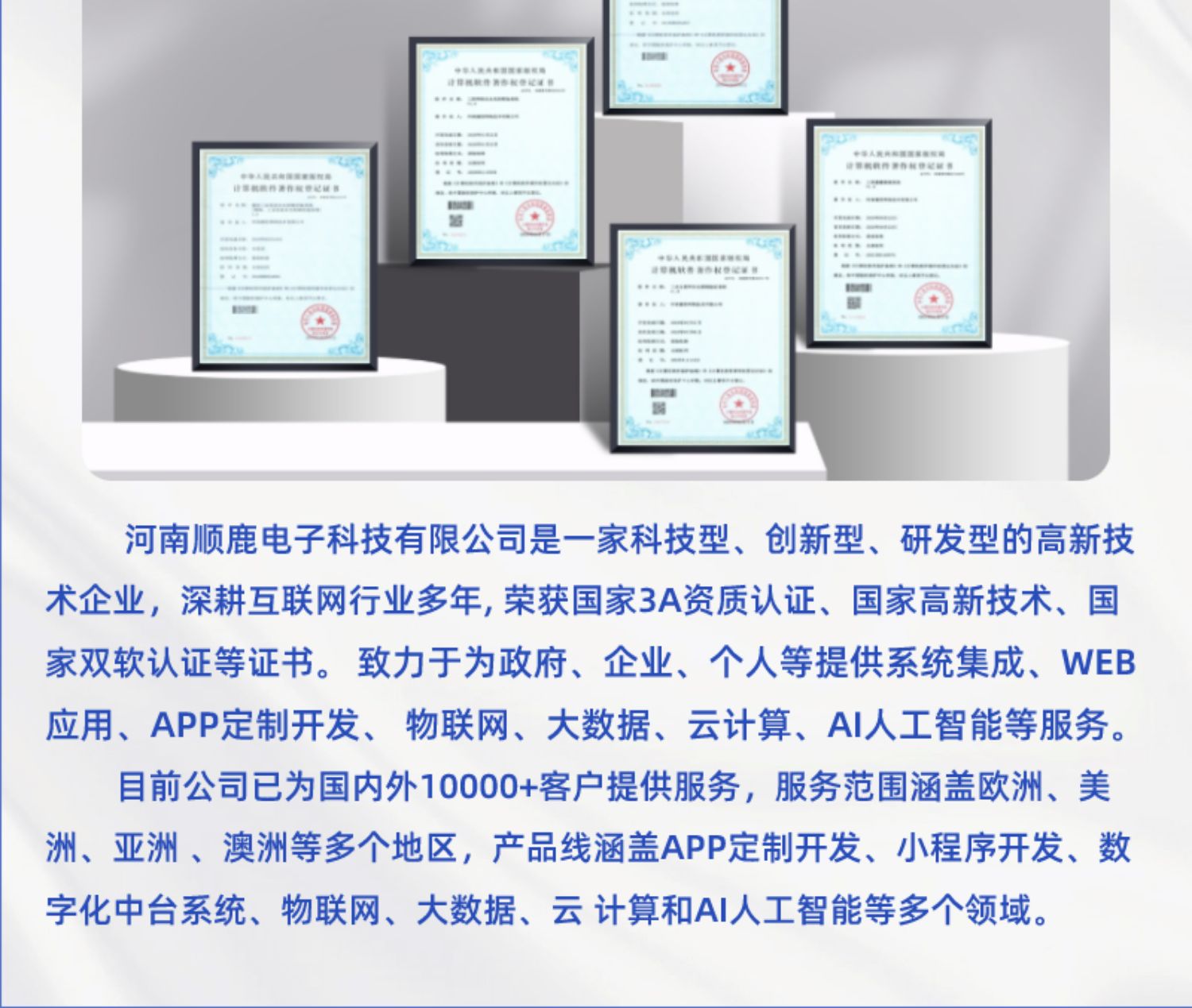APP 定制开发、小程序开发、数字化中台系统、物联网、大数据、云计算和AI人工智能